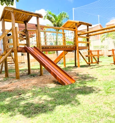 Fabricamos parquinhos de madeira em eucalipto, combinando qualidade, segurança e design moderno para crianças.